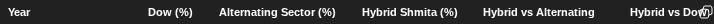 Hybrid Shmita reversed in 1940—a year where the reversal underperformed both the Dow and the base algorithm, showing that not every sabbatical switch was beneficial.